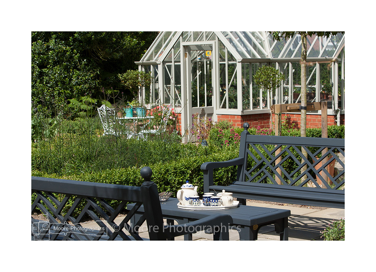 5. PROPS – props on can be used to create different moods or themes and taking some time to consider this is very important. Examples of this might be to include tables and chairs can evoke a sense of tranquillity; a cottage garden could have table and chairs and a floral, china tea service; a modern house might have modern pottery; a potting-shed, might have a variety of different sized pots outside.